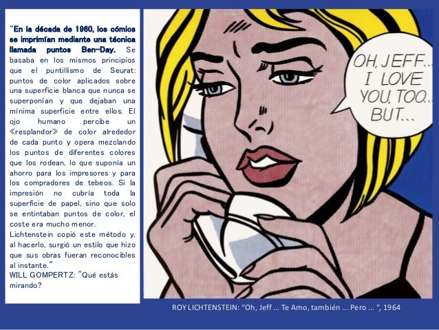 - Sus cuadros son como viñetas de cómic y contienen texto.